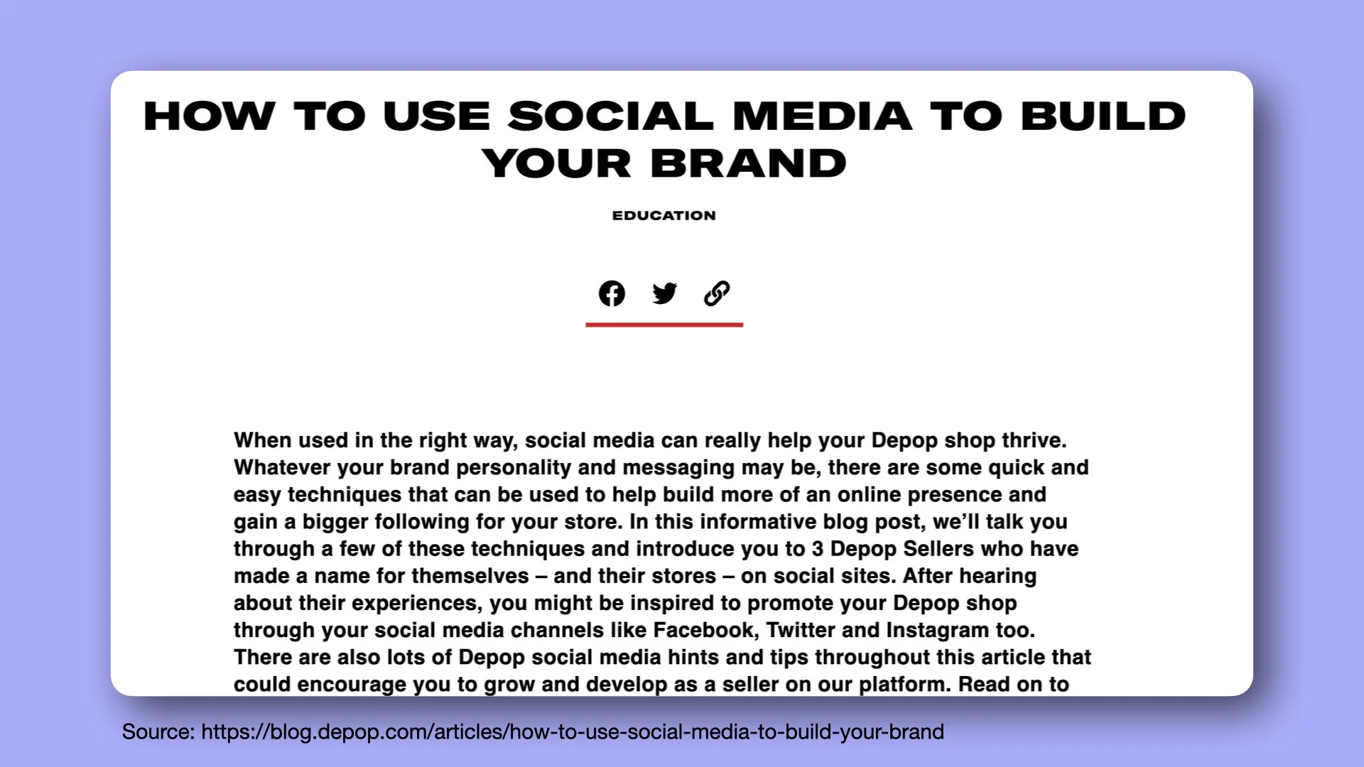 Encouraging Sellers to Promote Themselves: Depop actively urged sellers to market their profiles, particularly on Instagram, calling it “one of the best ways to build your brand and your customer base.”